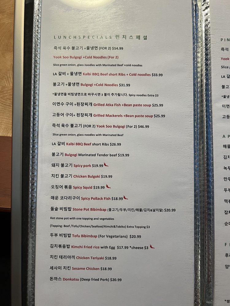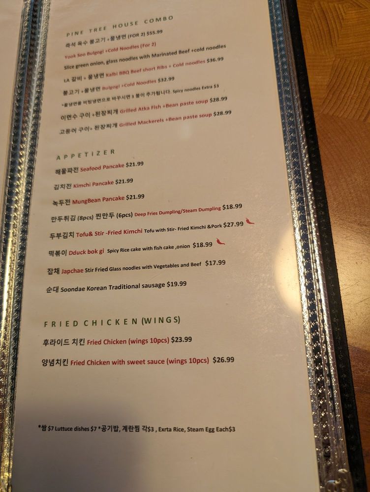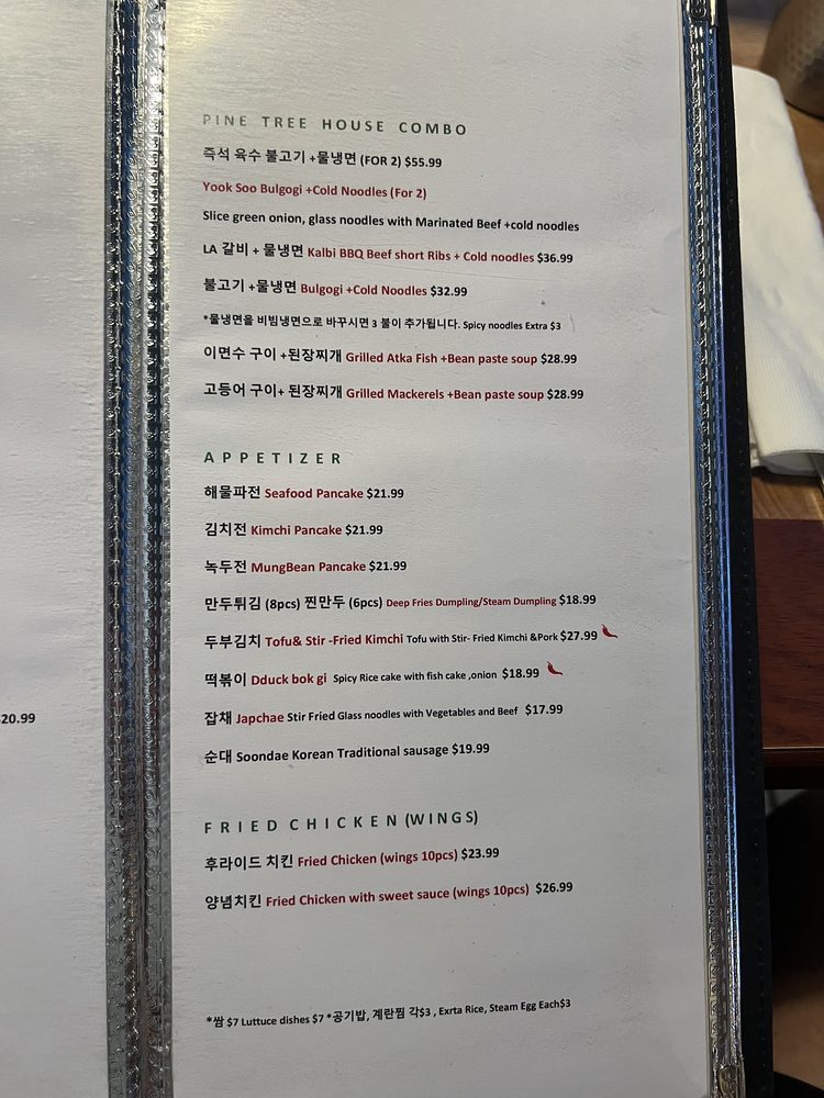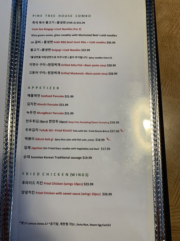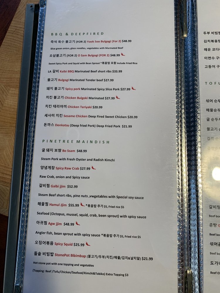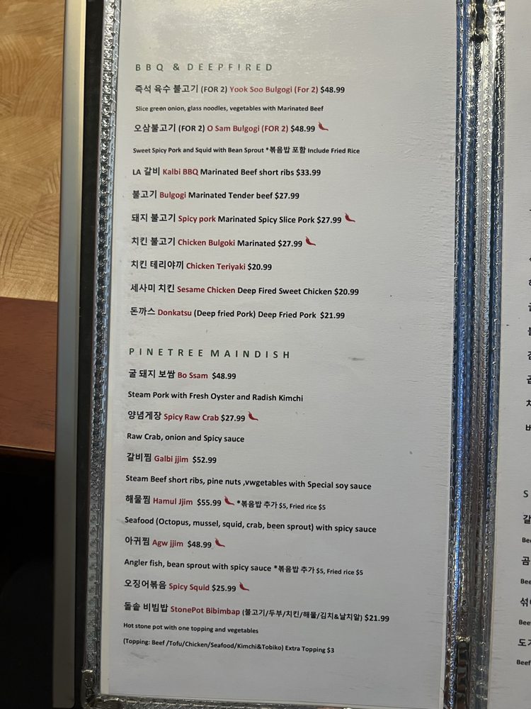 Introducing the menu at Pine Tree House, a cozy Korean restaurant in Sacramento, CA, is an experience not to be missed. Known for its delicious O Sam Bulgogi, a dish bursting with flavor and accompanied by flavorful fried rice, Pine Tree House offers a culinary delight that leaves patrons craving more. The restaurant's homey ambiance adds to the dining experience, making guests feel right at home. With exceptional service, a varied selection of banchan (side dishes), and standout main dishes like the Bossam and Kimchi Fried Rice, Pine Tree House continues to impress visitors. The restaurant's commitment to quality and care in preparing each dish shines through, making it a top spot for Korean cuisine enthusiasts in the area.